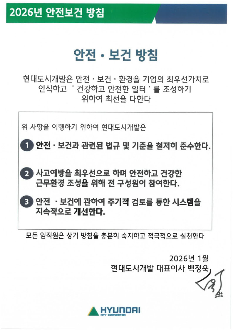 본 내용이 고지된 후에 현대도시개발 홈페이지에서 제공하는 서비스를 이용하시는 모든 이용자는 본 고지내용에 동의하는 것으로 간주됩니다.